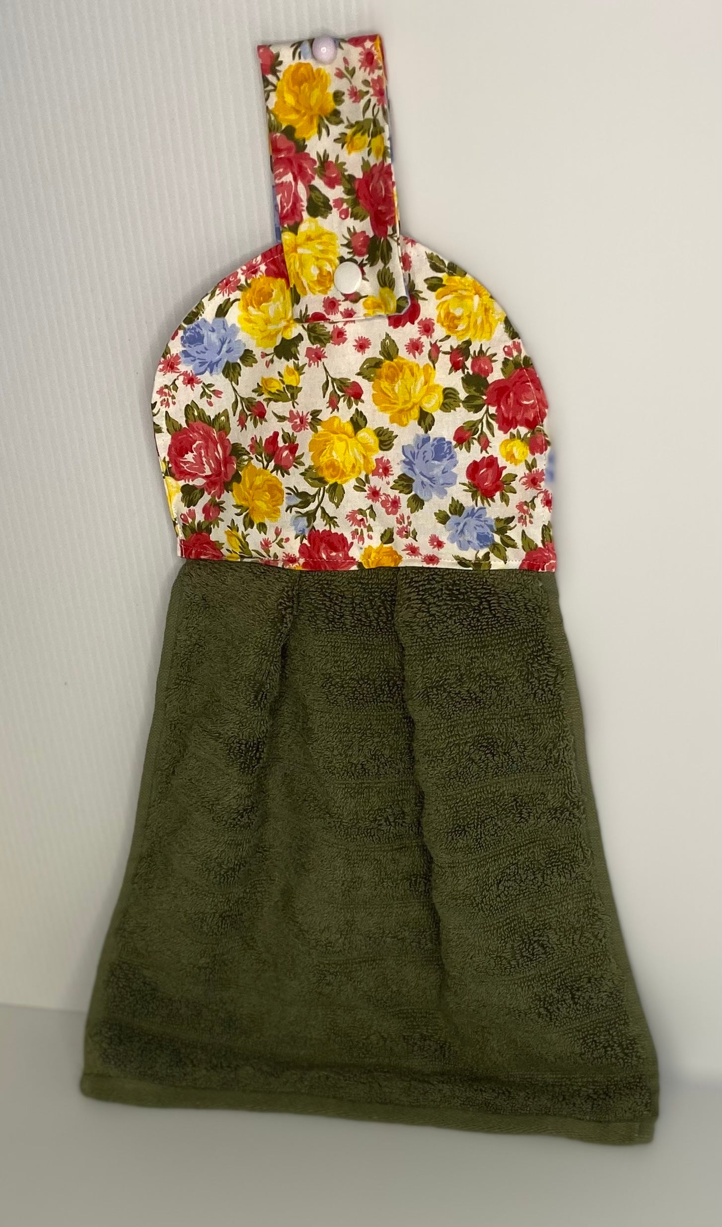 Hanging Hand Towel - Green Towel with Yellow & Red Roses Top